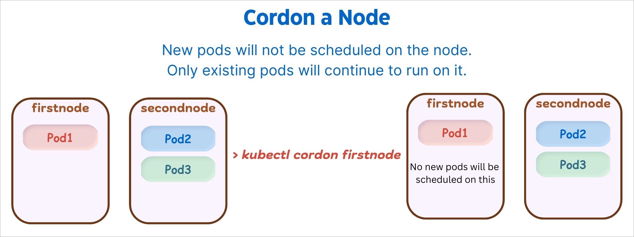 Your applications run on pods, and pods run on nodes. But sometimes, Kubernetes scheduler cannot deploy a pod on a node for several reasons, e.g., node is not ready, node is not reachable, network is unavailable, etc. In such cases, node operations help you manage the nodes better.