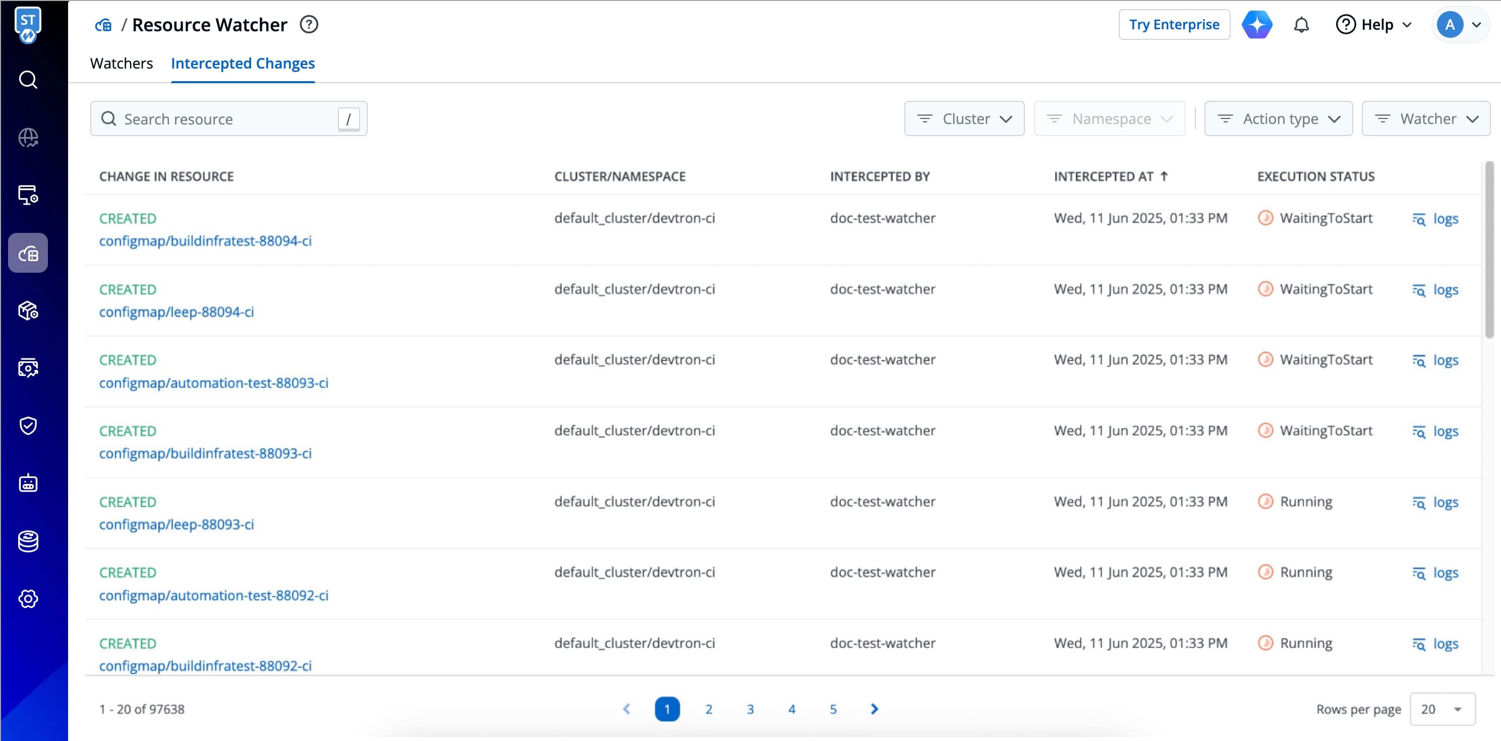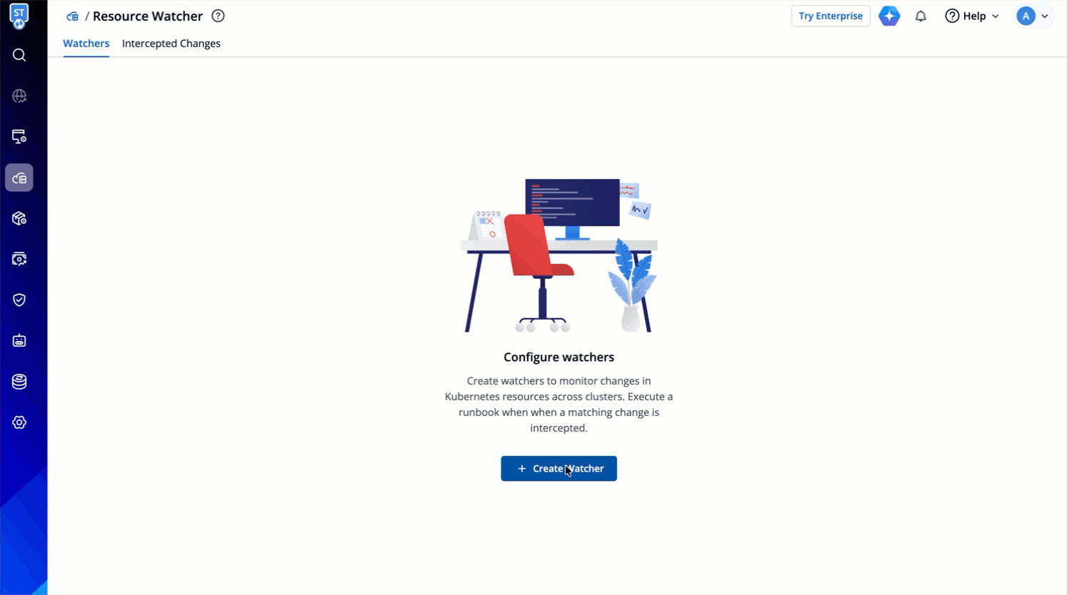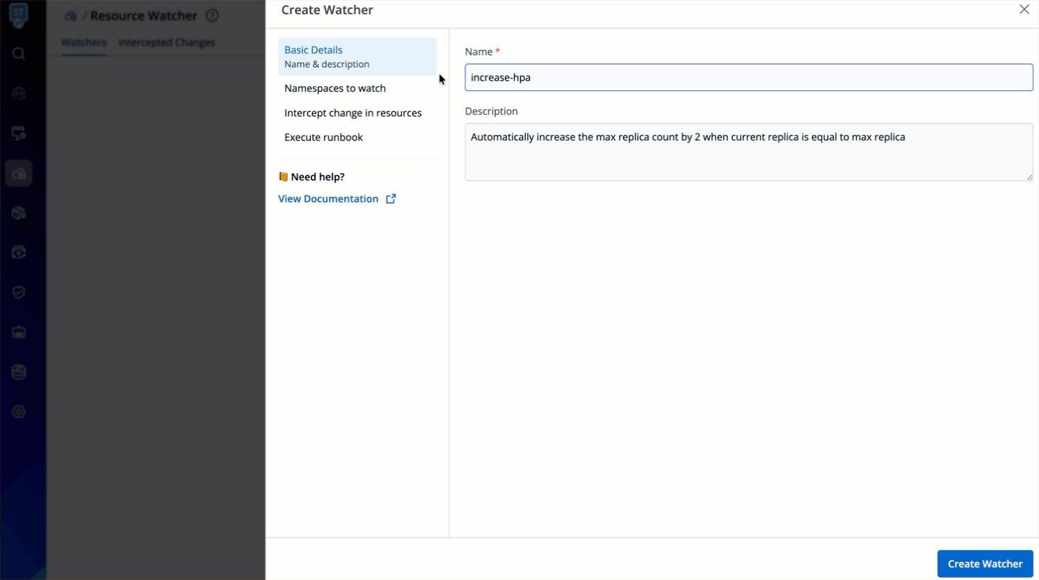 The watcher is now ready to intercept changes to selected resources and execute the configured job.