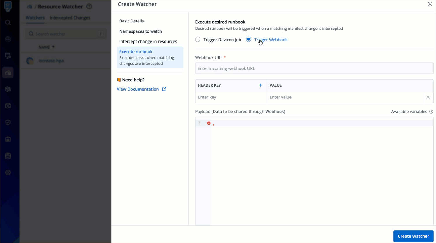 The watcher is now ready to intercept changes to selected resources and trigger the webhook.