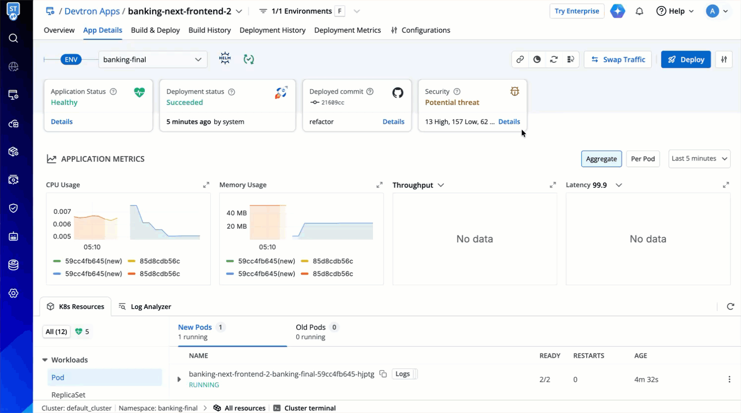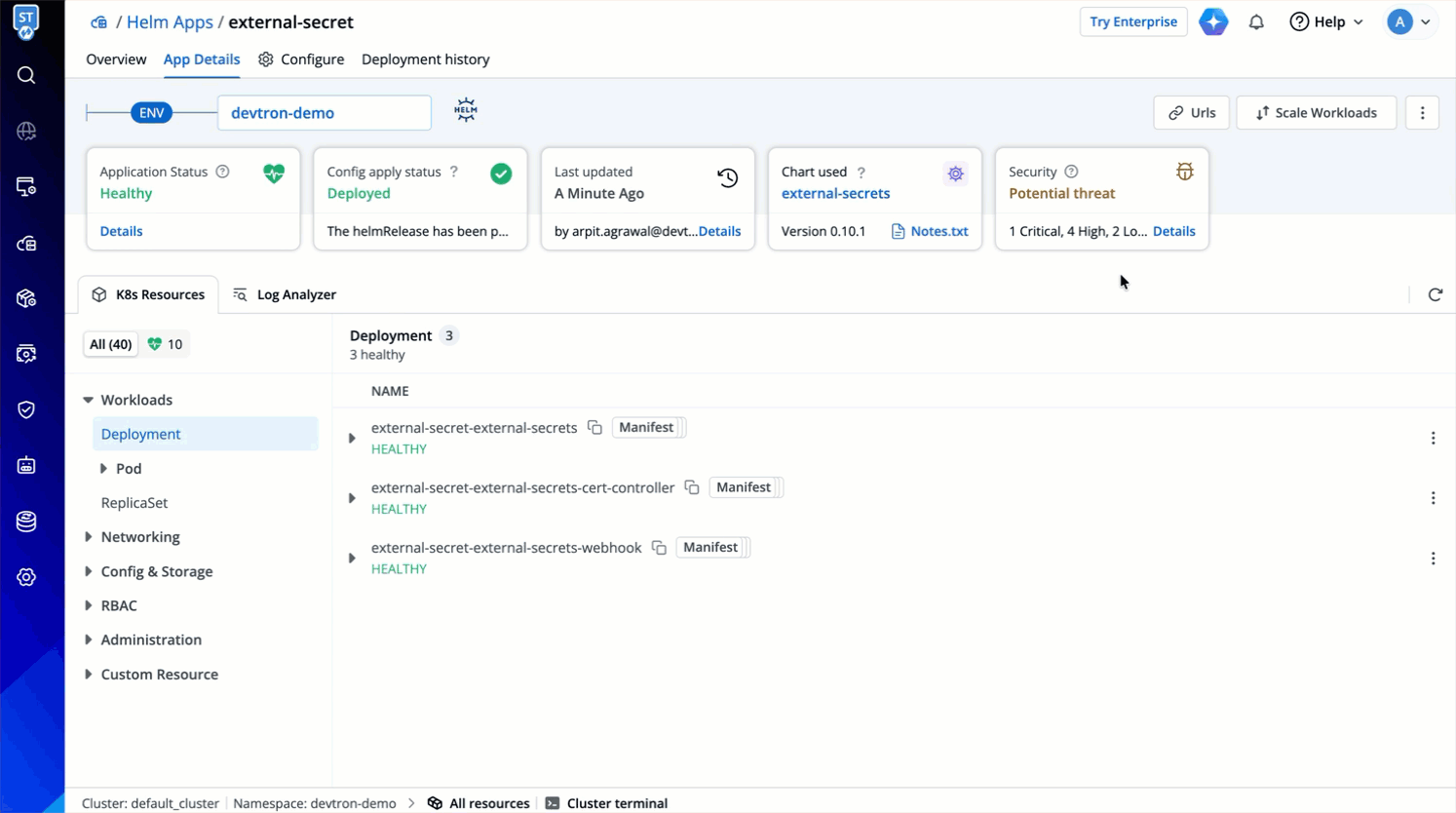 Go to App Details (Devtron App/Helm App) → Workloads (under