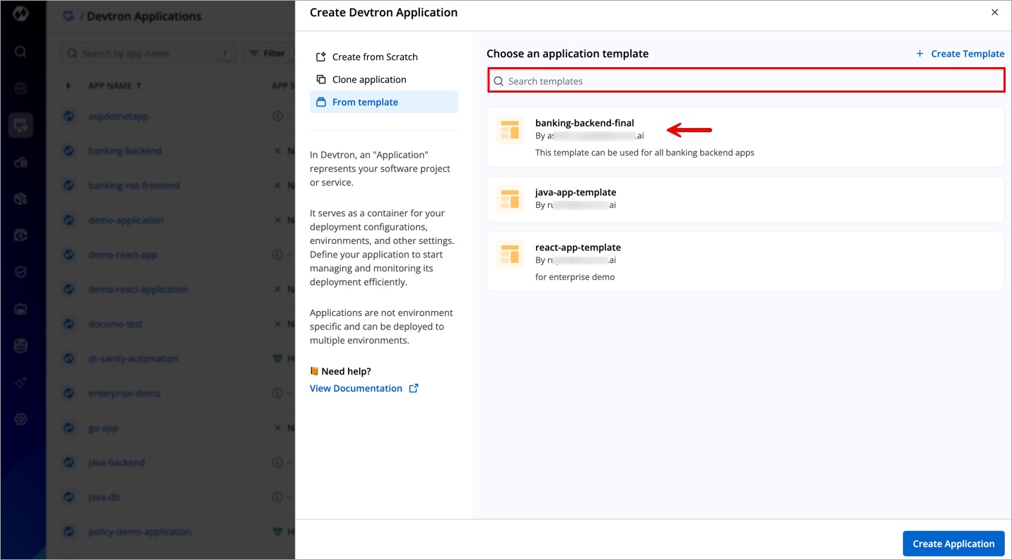 Select the application template from which you want to create the application; you can also search for the preferred application template from the search bar.