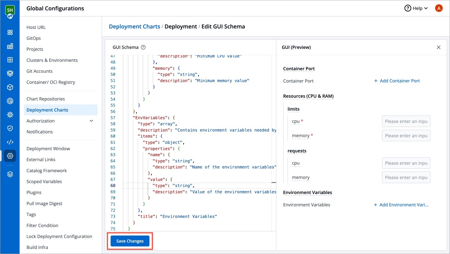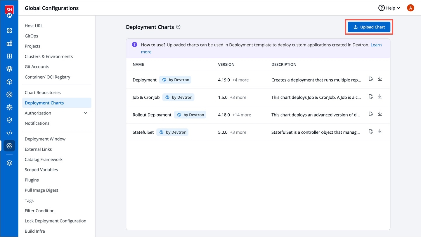 To view the list of available deployment charts, go to Global Configurations → Deployment Charts page.