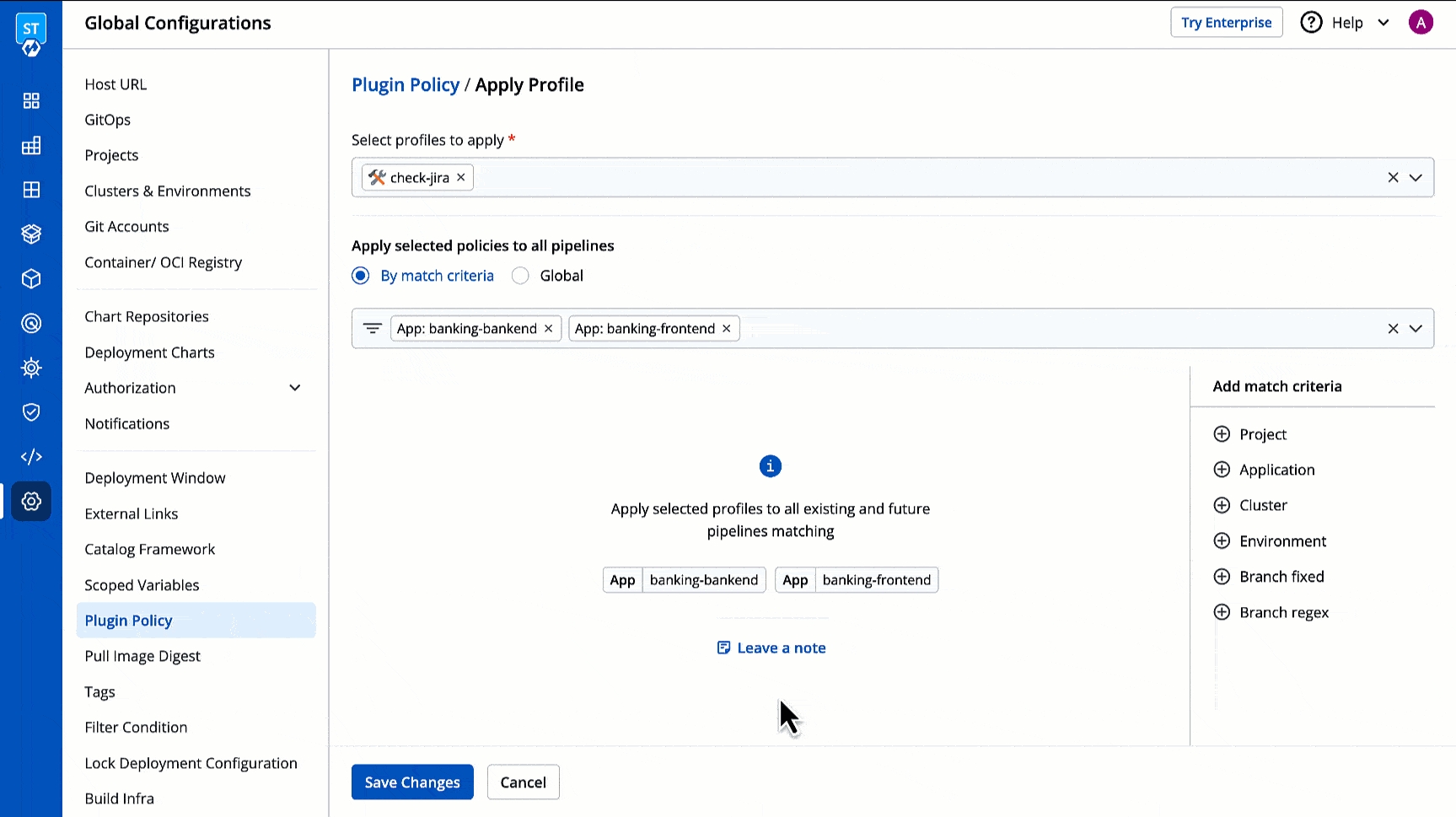Figure 13: Deciding Matching Criteria for Pipelines Click Save Changes.