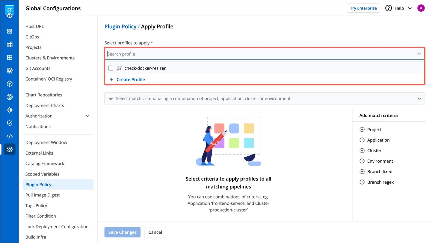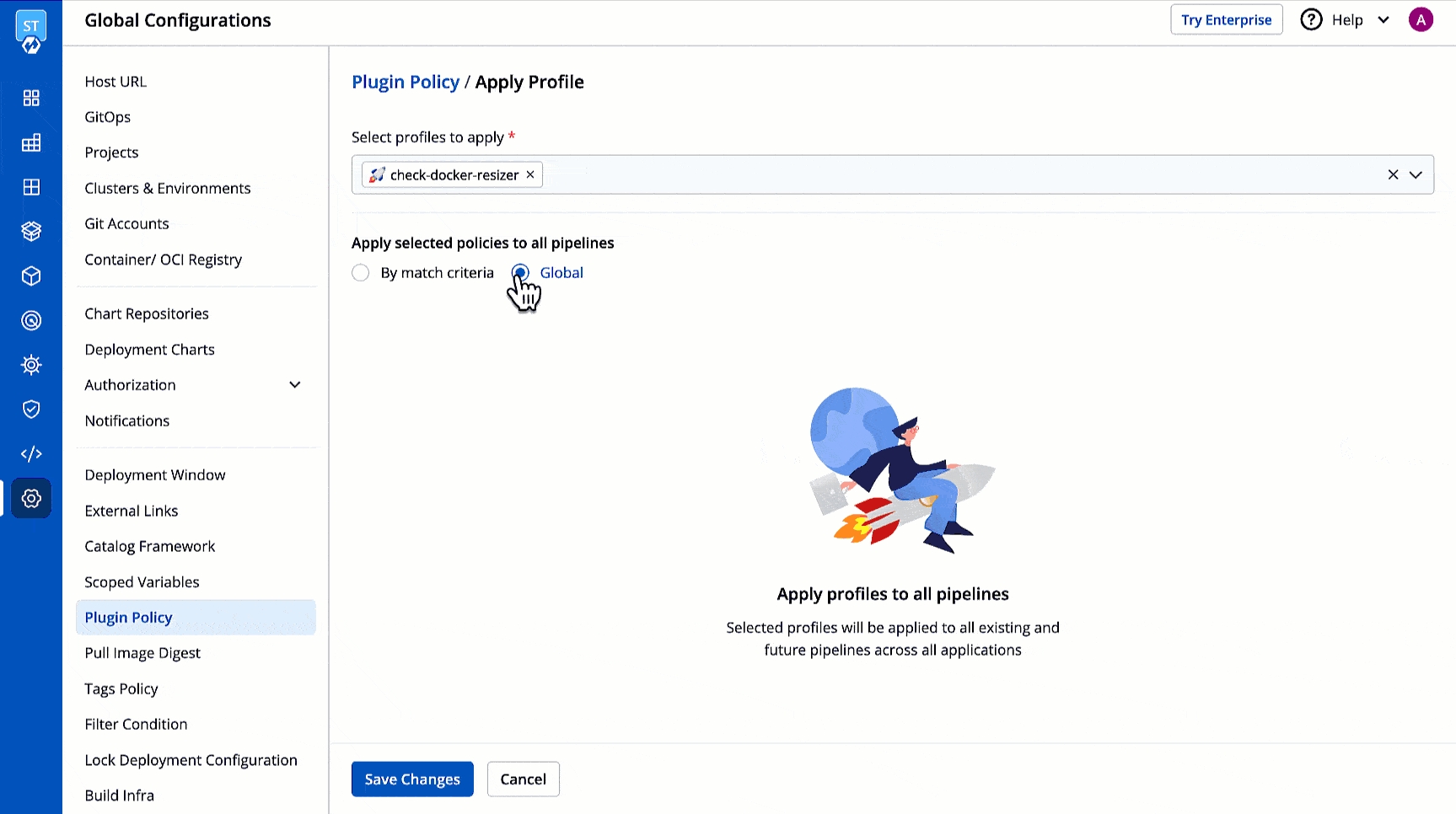 Figure 10: Selecting Profiles Under Apply selected policies to all pipelines: