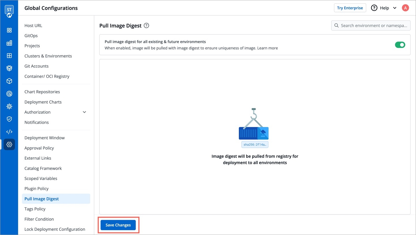 From the left sidebar, go to Global Configurations → Pull Image Digest.
