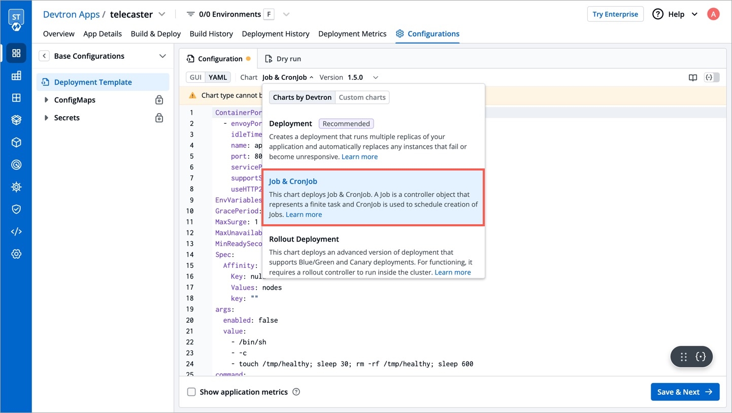 Super-admins can lock keys in Job & CronJob deployment template to prevent non-super-admins from modifying those locked keys. Refer Lock Deployment Configuration to know more.