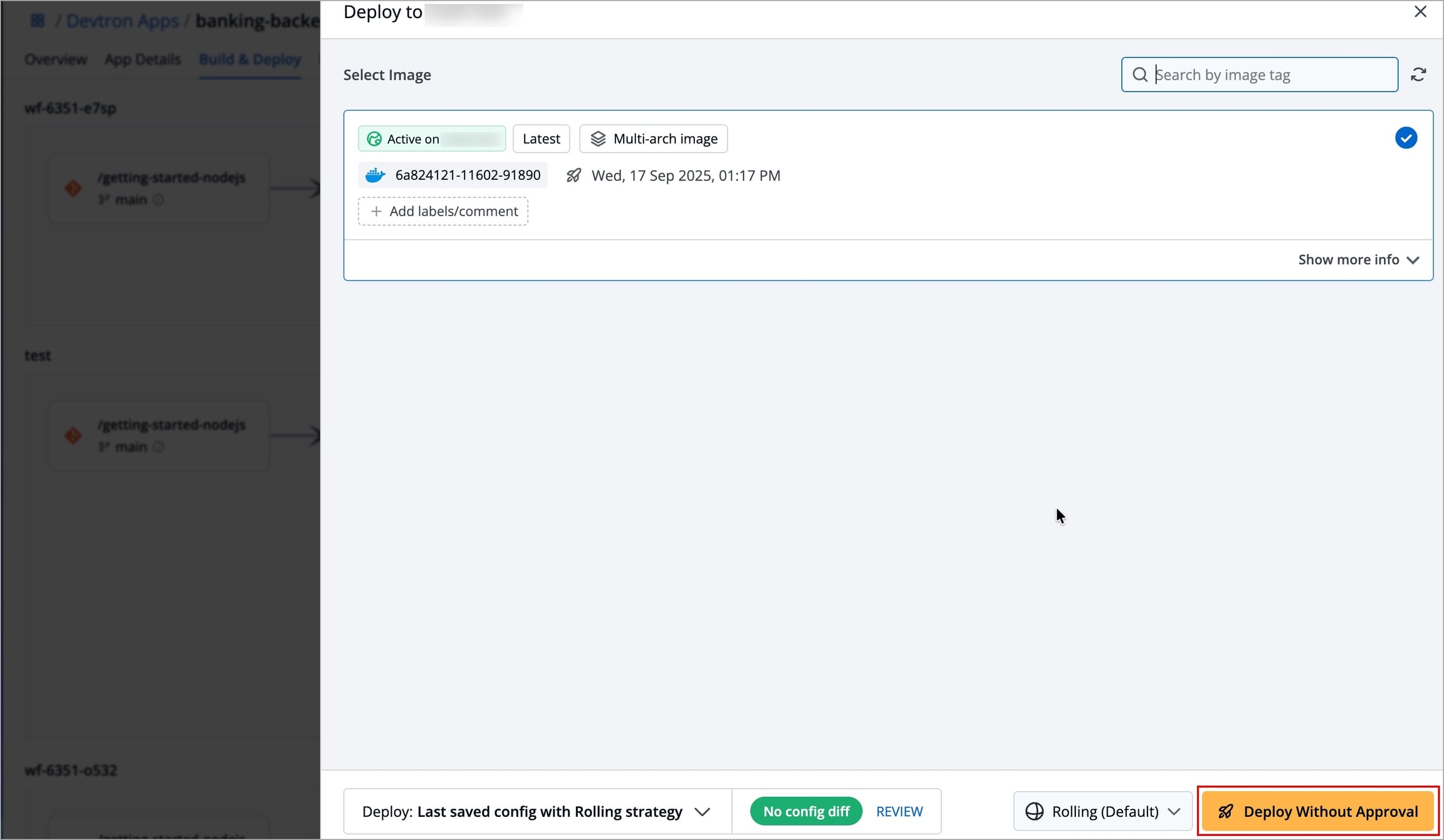 The Approval Policy feature in Devtron lets you introduce an approval mechanism whenever your users perform the following actions: