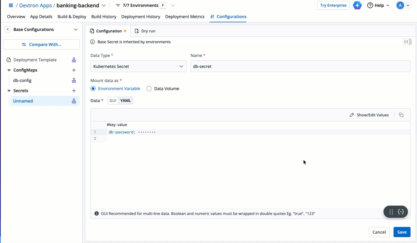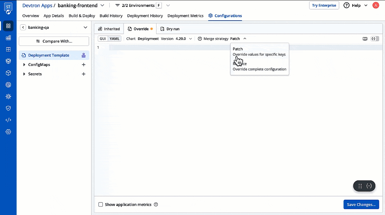 Configuration Change: Exempts the super-admins to edit base configurations such as Deployment Templates, ConfigMaps, or Secrets without requiring approvals.