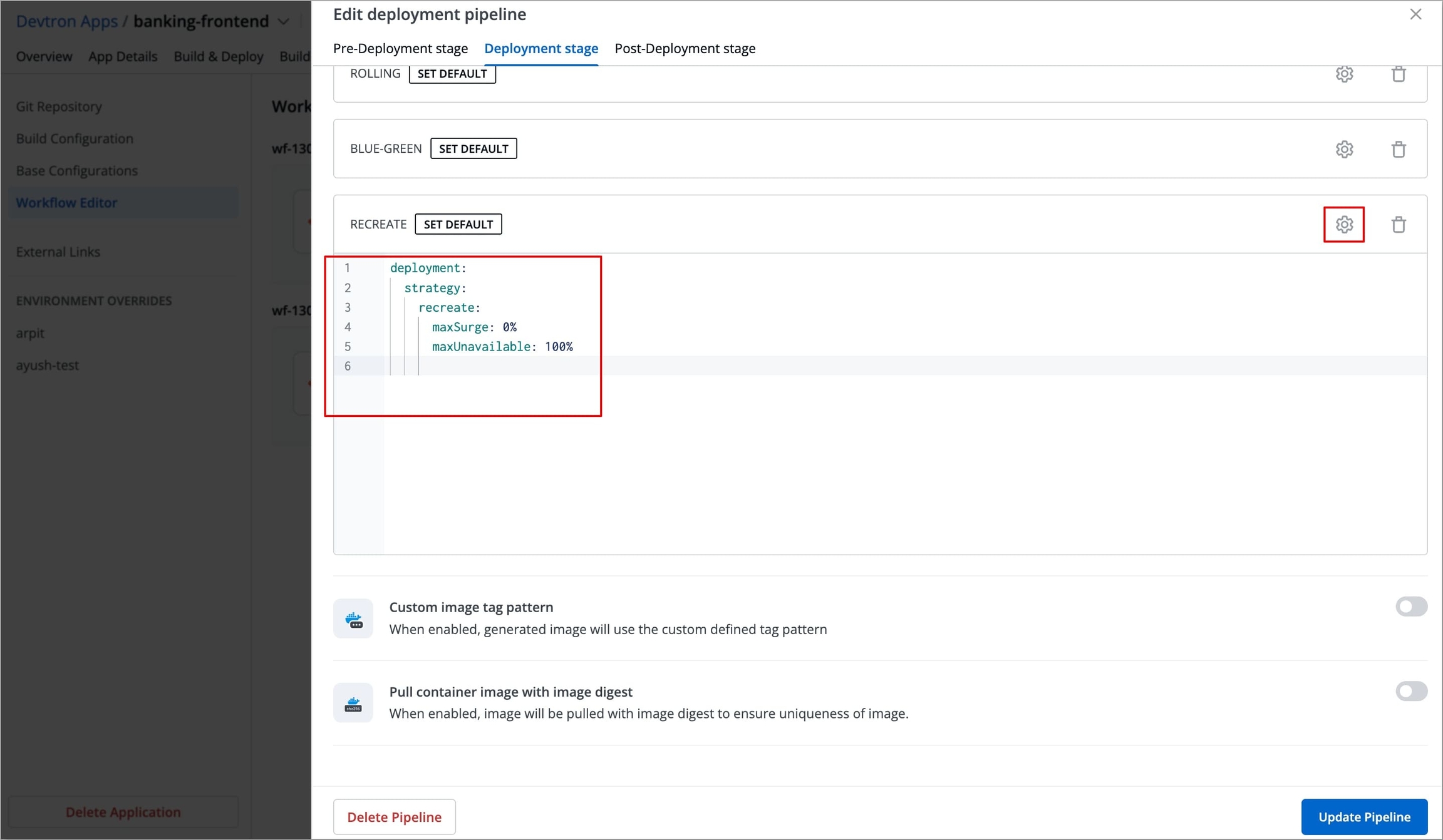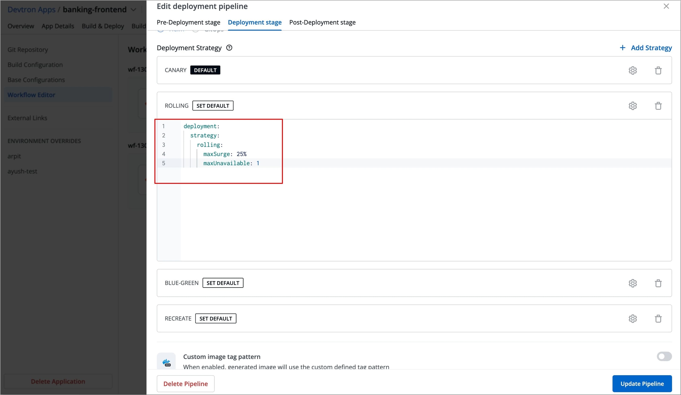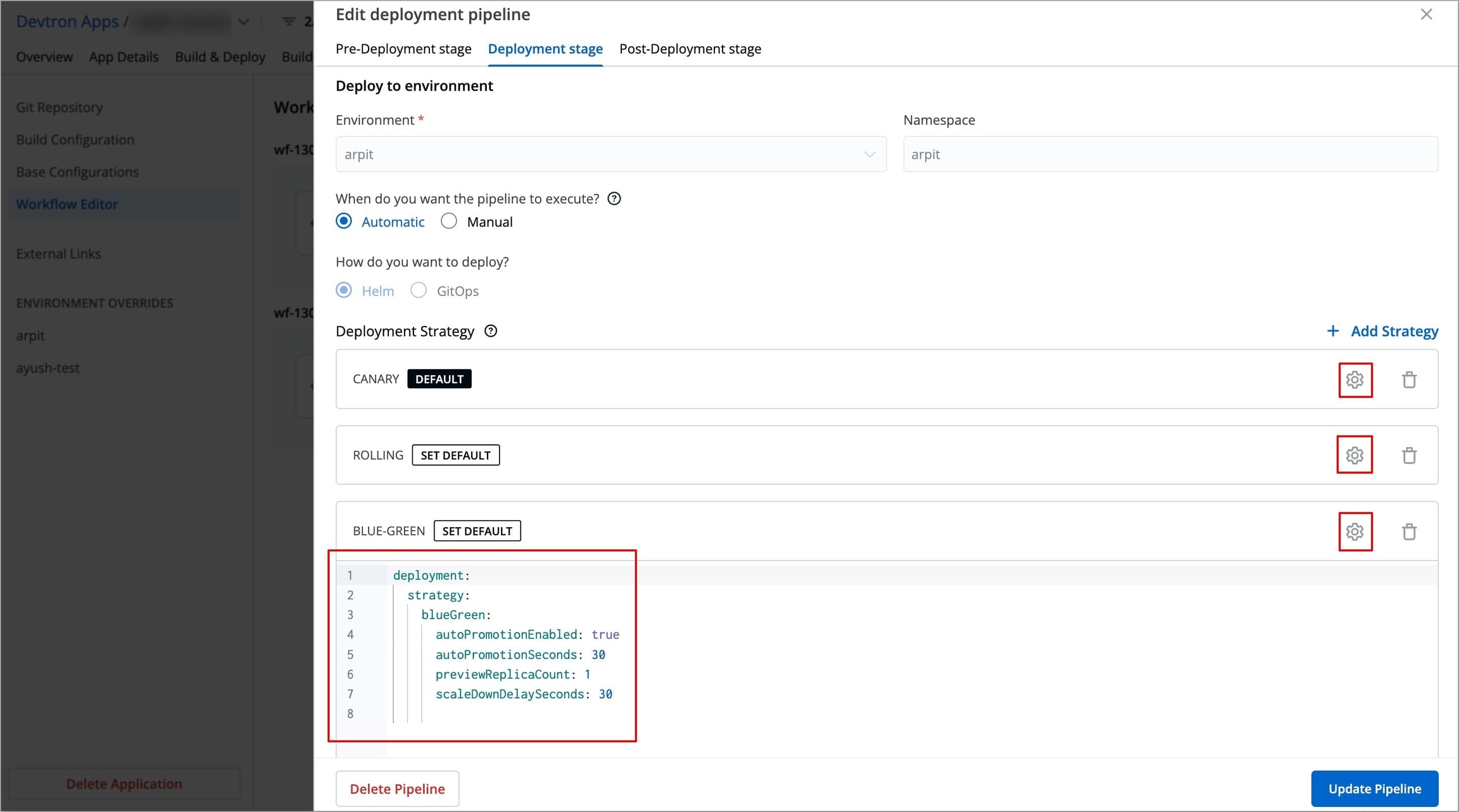 To configure the CD pipeline for different deployment strategies, follow the steps below: