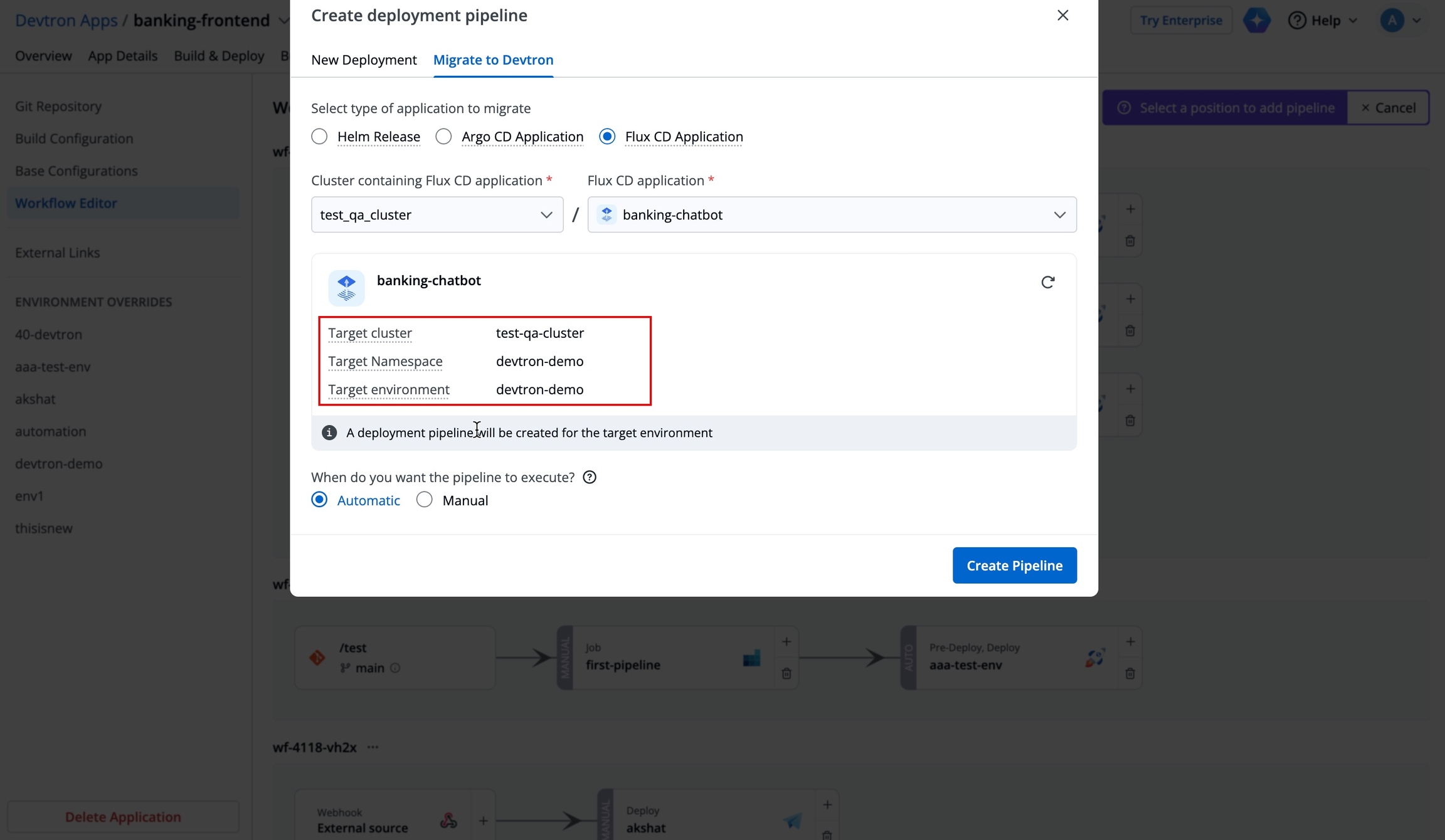 Figure 30: Target Environment Select the trigger (Automatic/Manual) and click Create Pipeline.