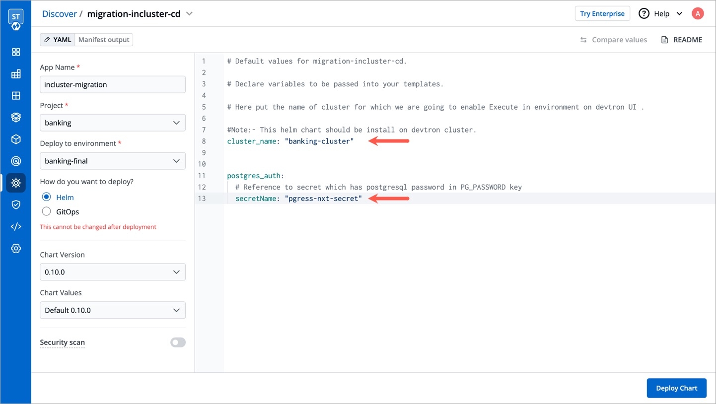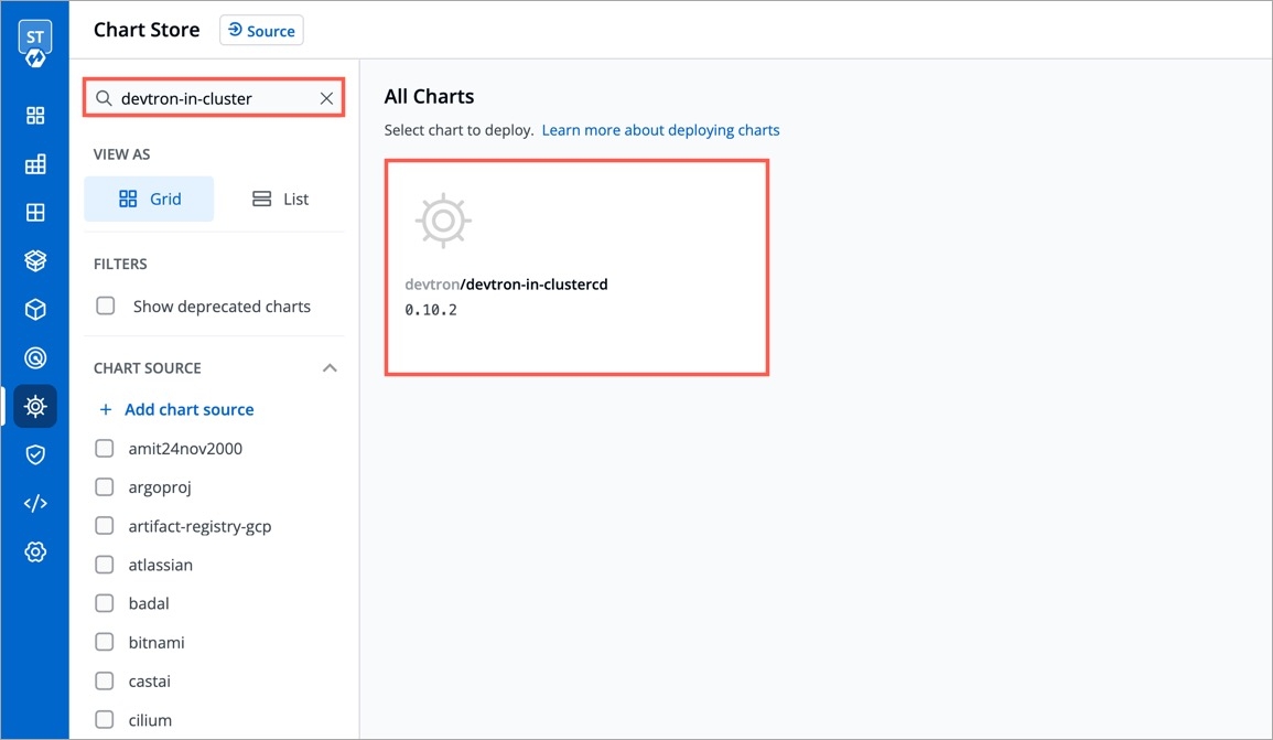 Figure 22: 'devtron-in-clustercd' Chart Configure the chart according to your requirements and deploy it in the target cluster.