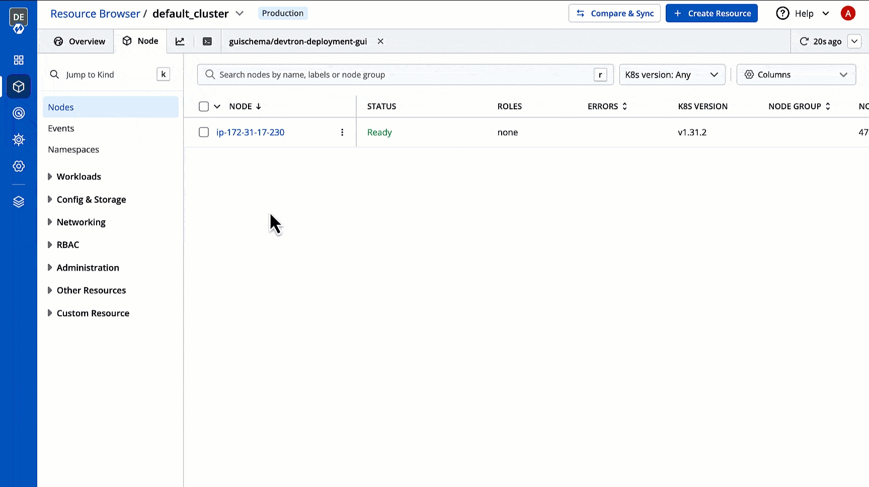 Figure 2: Click GUI Schema Click Edit Live Manifest to modify the YAML.