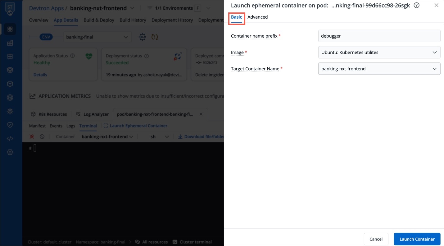 Click Launch Ephemeral Container as shown below.