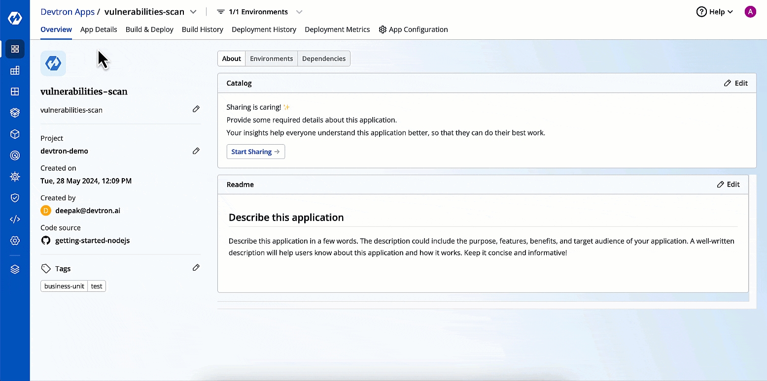 One of the key components of DevSecOps is the detection of security risks. Currently, Devtron supports the following types of scanning: