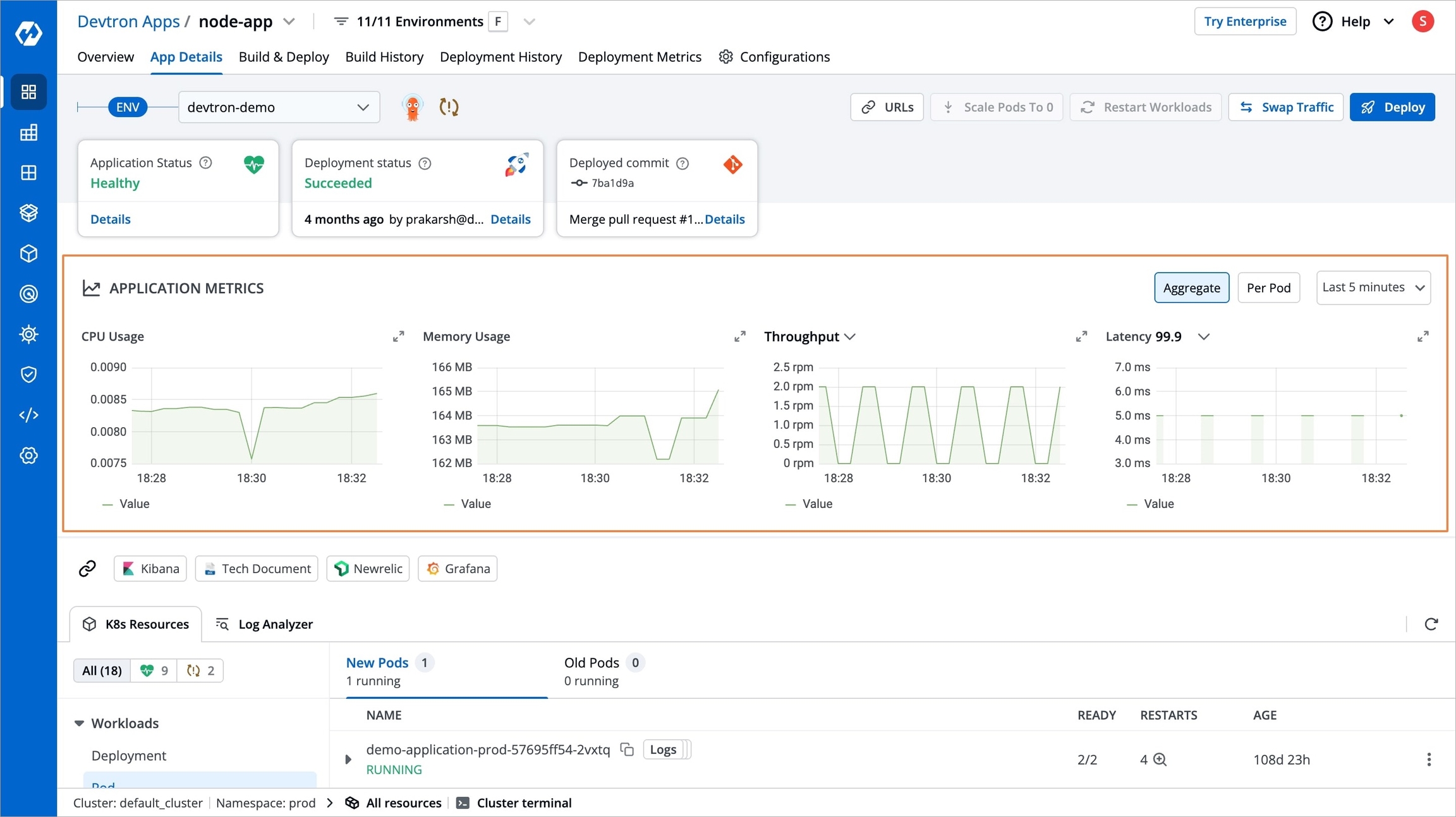 Figure 9: Enable Application Metrics Now, you can track all your application metrics by navigating to Applications and going to the App Details page of your Devtron App as shown below.