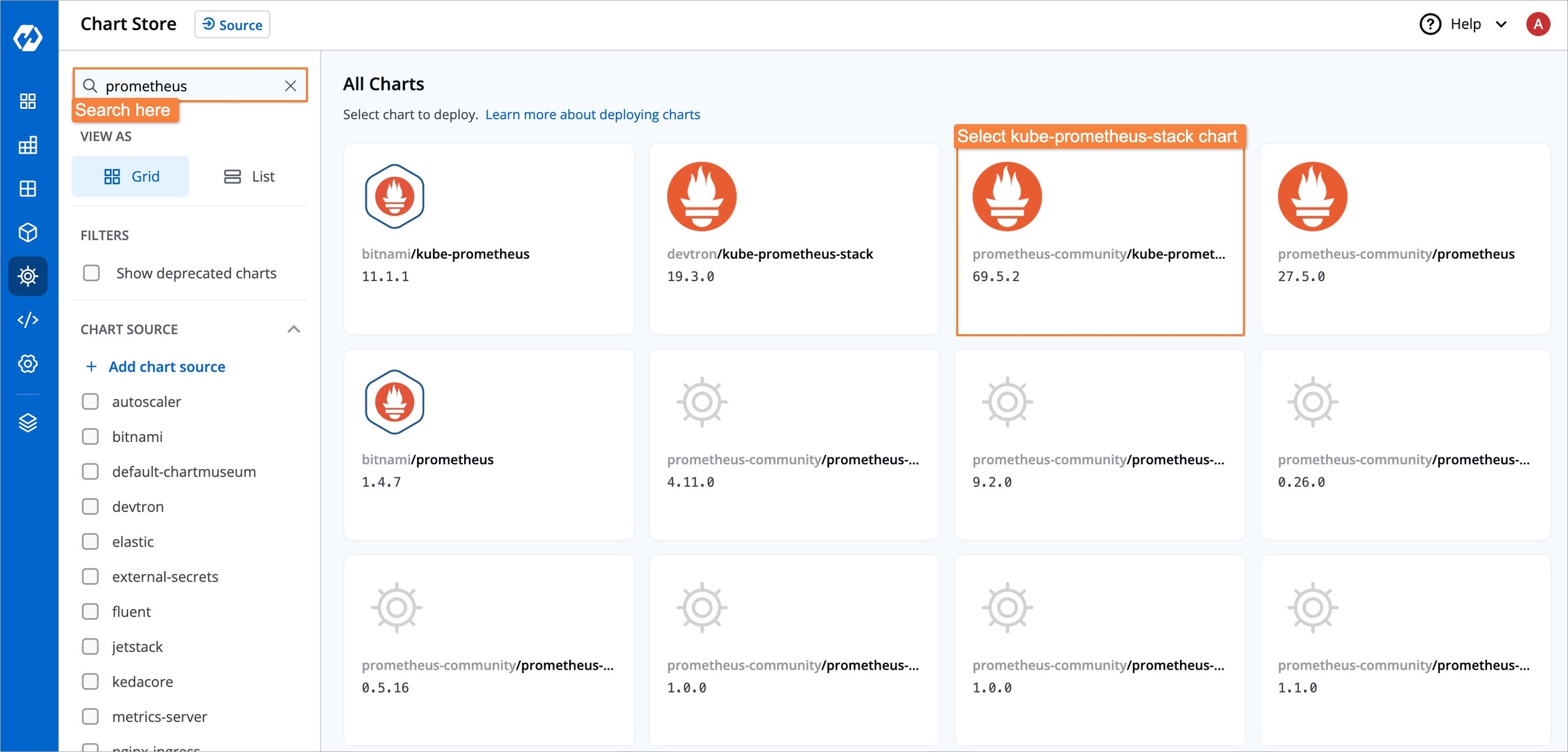 prometheus. Use the Prometheus community'skube-prometheus-stackchart to deploy Prometheus.