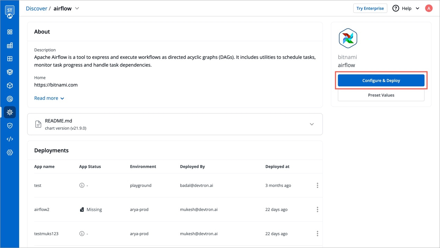 Figure 5: Choosing a Helm Chart Click Configure & Deploy.